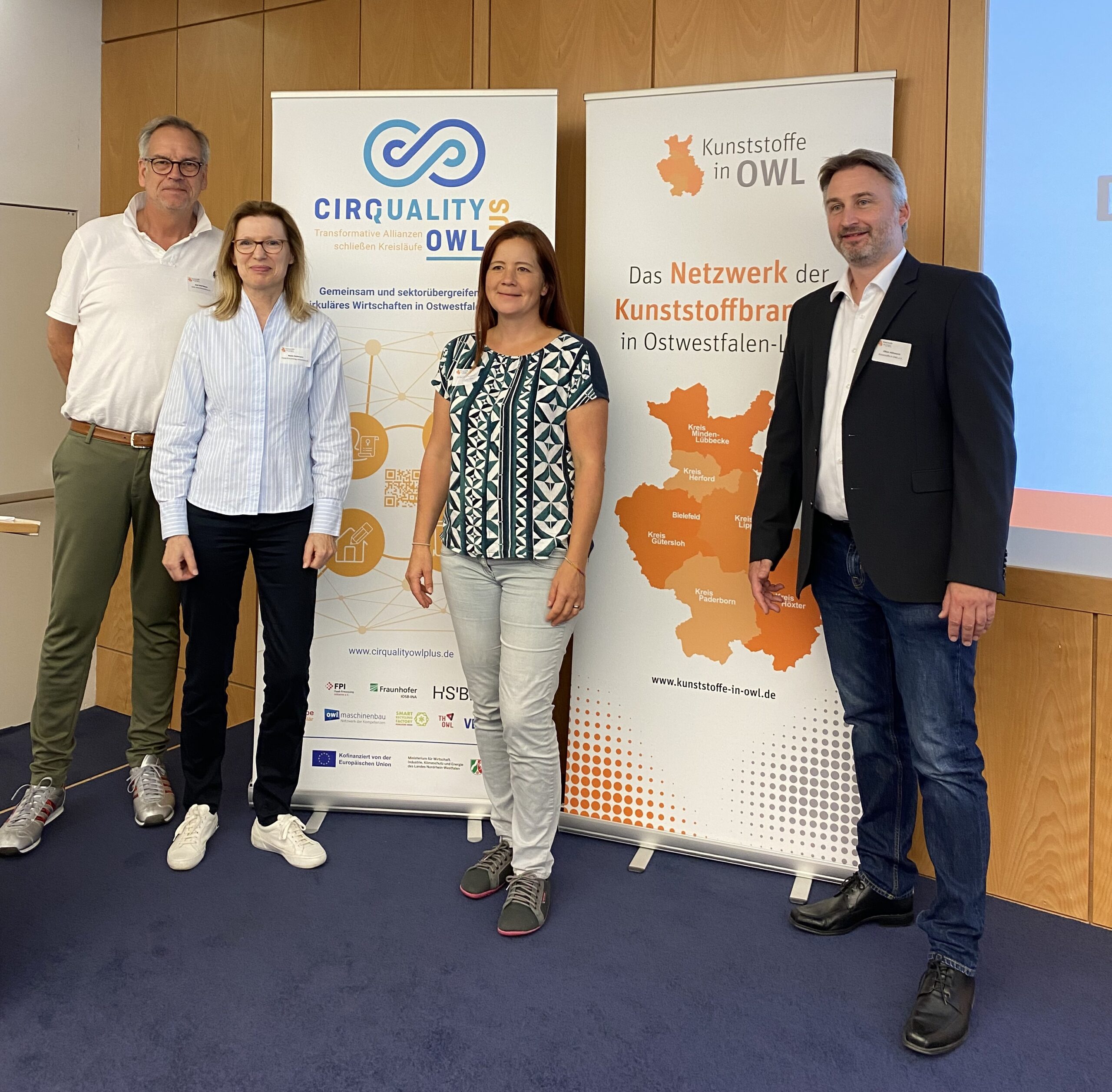 CirQualityOWL plus, vertreten durch Lisa Pusch, Leitung des Projektes PROZIRKULÄR von der Technischen Hochschule Ostwestfalen-Lippe (TH OWL) zusammen mit Gerald Knauf, Geschäftsführender Vorstand Wissenschaftsladen Bonn gaben Einblicke in den derzeitigen Forschungsstand und dessen konkreten Anknüpfungspunkte für die Anwendung in der Praxis.